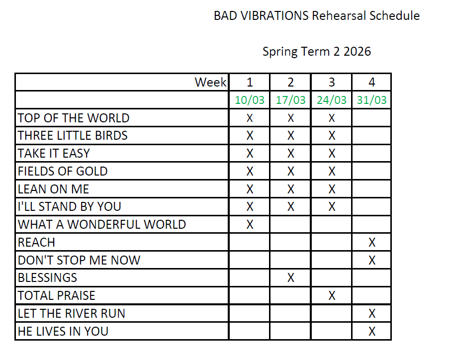 Choir Rehearsals Spring Term